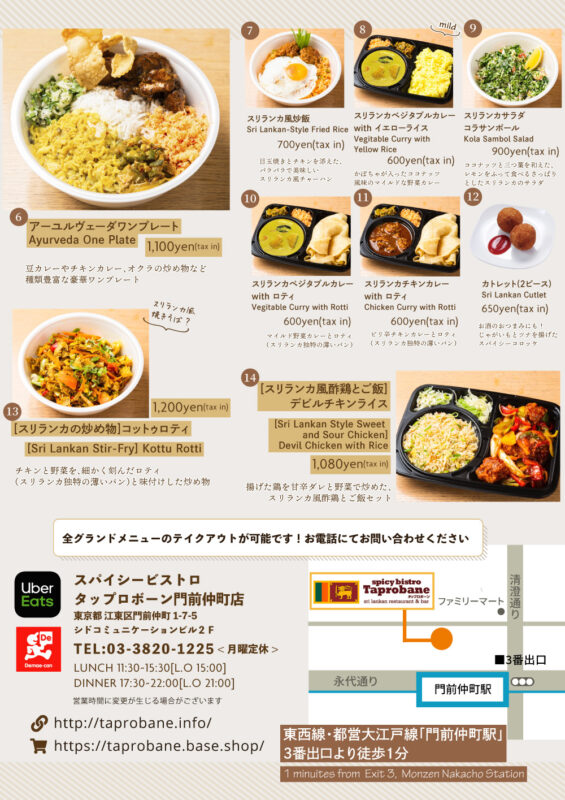 △場所は門前仲町駅徒歩1分の、清澄通りから少し入った路地沿い。スリランカ国旗が目印です