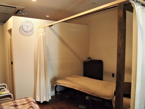 とても明るい店内ですが、マッサージを受けるベッドのある空間は、少し奥まっていて落ち着きます。