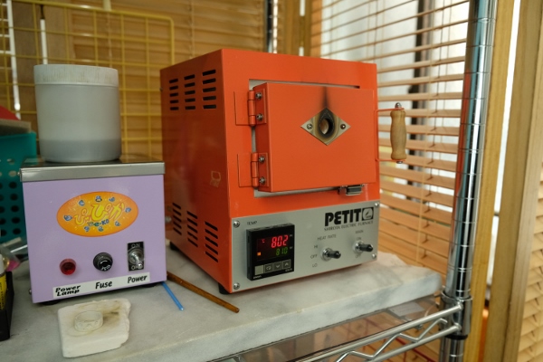 満足したら焼きに入ります。こちらのアートクレイシルバーは650度から焼くことができ、低温で焼く場合は融点が低いガラス(800度前後のもの)などとの相性もばっちり。今回はシルバーだけなので、800度で5分間焼きます。