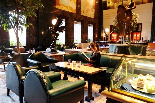 泊まる代わりにロビーのラウンジでお茶をいただくことにします。