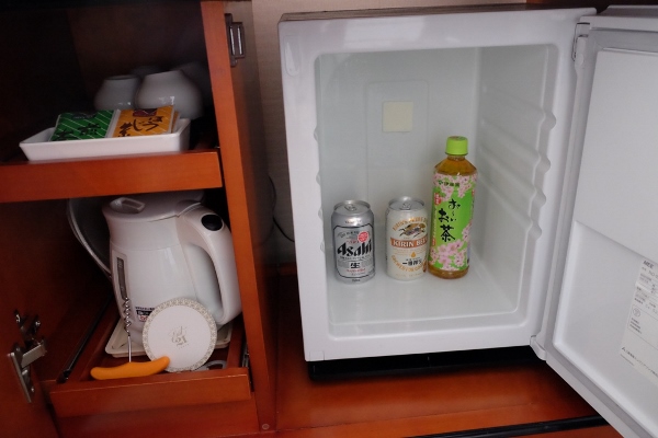 ミニ冷蔵庫、電気ポットももちろんついています。