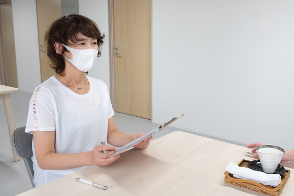 吉田さん:初回の方は必ずカウンセリングを行い、問診票に記入しながら体の状態やご希望を確認します。