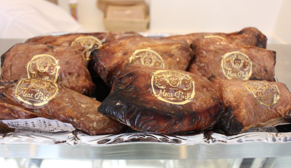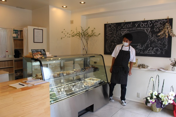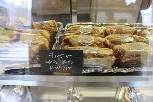 △ショーケースには奥の工房で手作りするチャーシューとローストポーク、お弁当やお惣菜が並びます