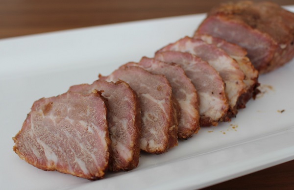 こちらは、豚バラと肩ロースをじっくり焼き上げた「ローストポーク」。豚バラはこってりとしたおいしさ、肩ロースはジューシーで冷めても美味。