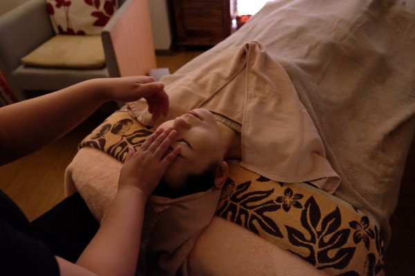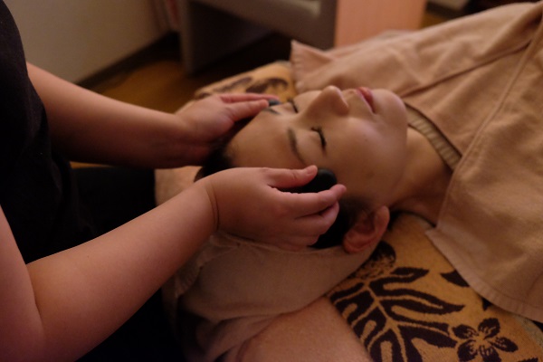 「薔薇のまどろみ」(60分8,000円)もそのフィロソフィーに則って、頭や顔に触れながら、その人の不調を探っていき、最適な施術をしてくれます。