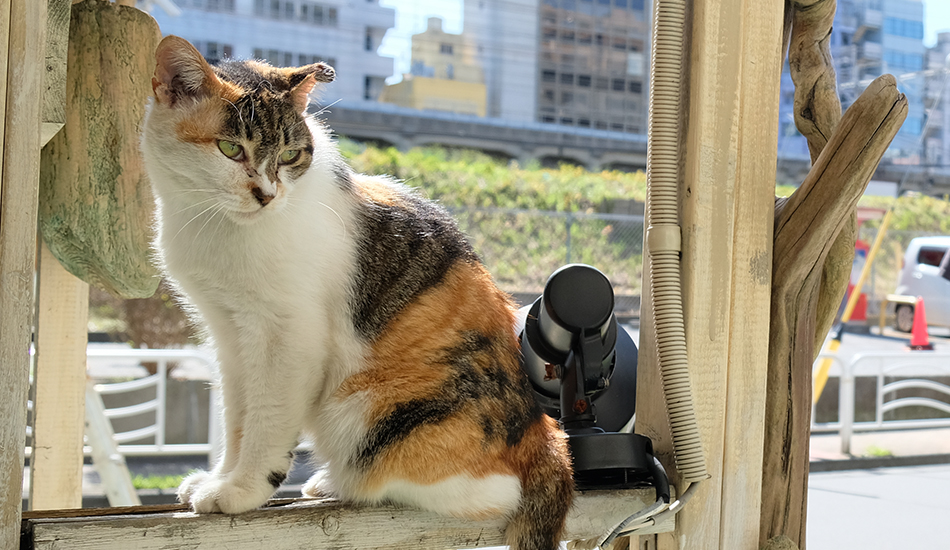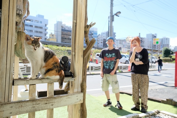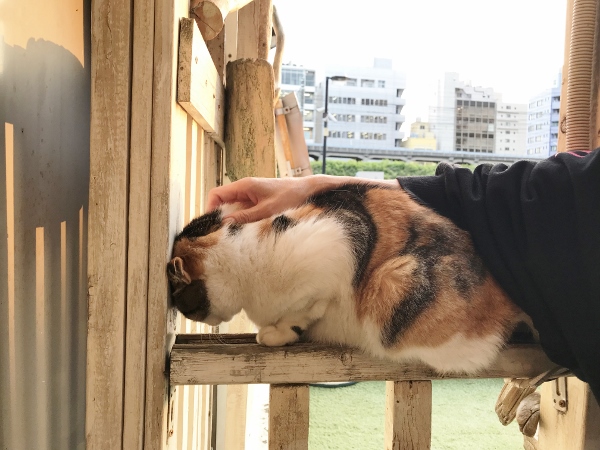 もともとは通い猫だったそうですが、オーナーがミーちゃんのために作ったキャットハウスや遊具を手づくり。スタッフやお客さんと遊んでいるうちに、この場所がミーちゃんの「わが家」になりました。