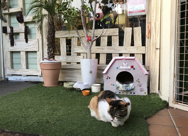 亀戸の美容室「ロコマーケット 亀戸店」の店先で、毎日気ままに過ごしているのは、この店の看板猫・ミーちゃん(♀13歳)。