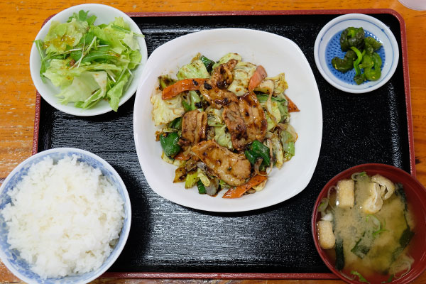 鶏の唐揚げ定食(680円)はこの店の人気メニューのひとつ。