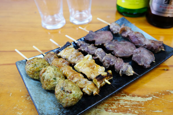 そして居酒屋料理の定番、肉の串焼きは6種類あって、どれも1本165円。