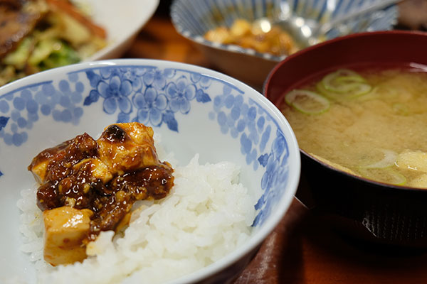 滑らかな豆腐とたっぷり入ったひき肉が、豆板醤や甜面醤、山椒、麻辣醤など、いくつもの香辛料を使いピリッとした辛さに味付けされて、ご飯との相性抜群!