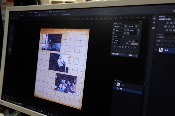 古いアルバムをデータ化するだけでなく、写真を1枚づつ切り取り補正までしてくれる補正職人ともいうべき佐野さんに、工程を見せていただきました。
