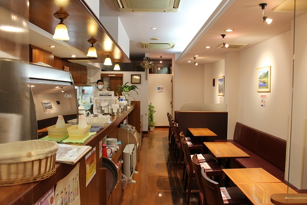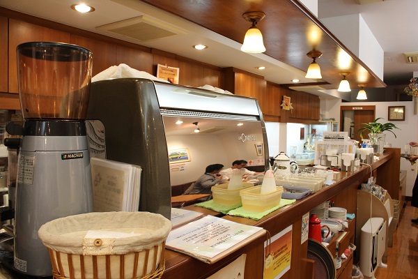 △この場所で35年、真心こめてコーヒーを淹れて続けてきた小野さん。数年前にリニューアルし、Wi-Fi完備、清潔感あふれる明るい空間に