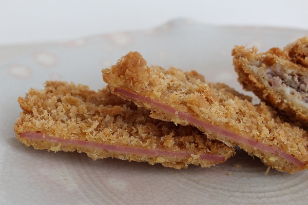 昔懐かしいおいしさで根強い人気のハムカツ65円。小腹がすいたときのおやつにしてもよし、パンで挟んでハムカツサンドにしてもおいしそう~。