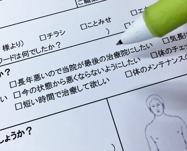 最初に問診票を記入し、つらい箇所などをお話します。