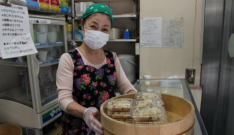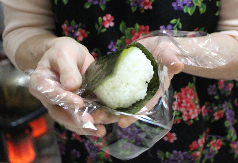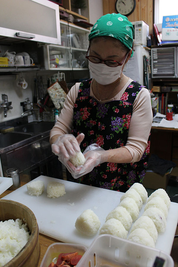 次から次へと売れるので、おにぎりを握り続けるゆき子さん。