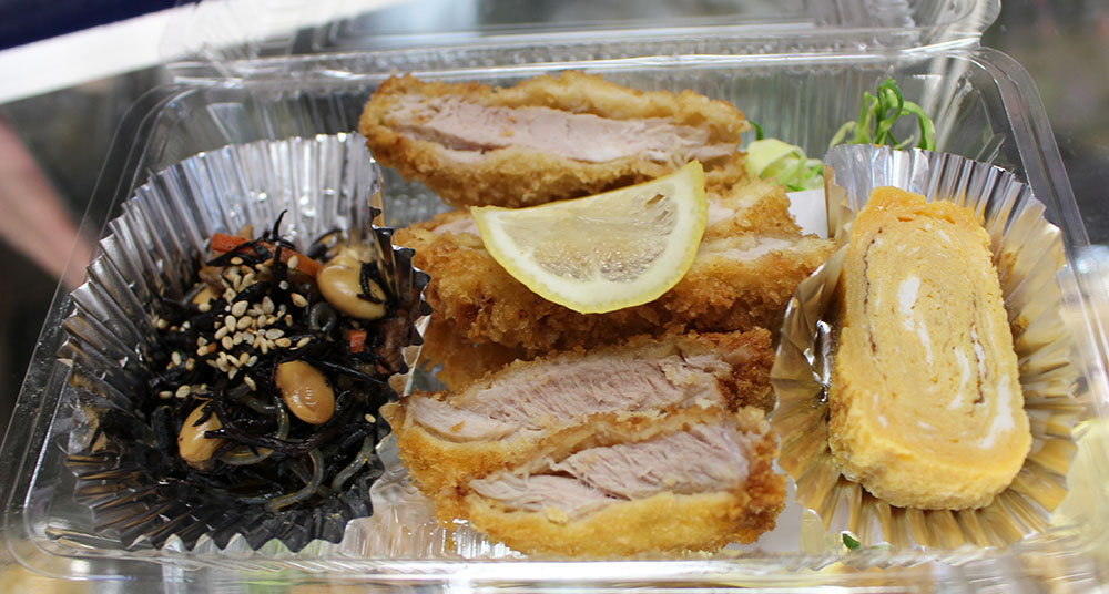 甘じょっぱい玉子焼きに、ヒレカツ、この日の副菜は、ひじき。レモンが爽やか!