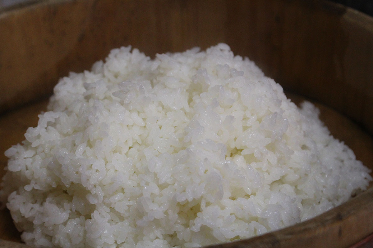 炊き上がったお米は、飯台で65℃まで冷まします。こうすることで、ギュッと握り込まない、一粒一粒が感じられる、ふんわりしたおにぎりを作れるそう。