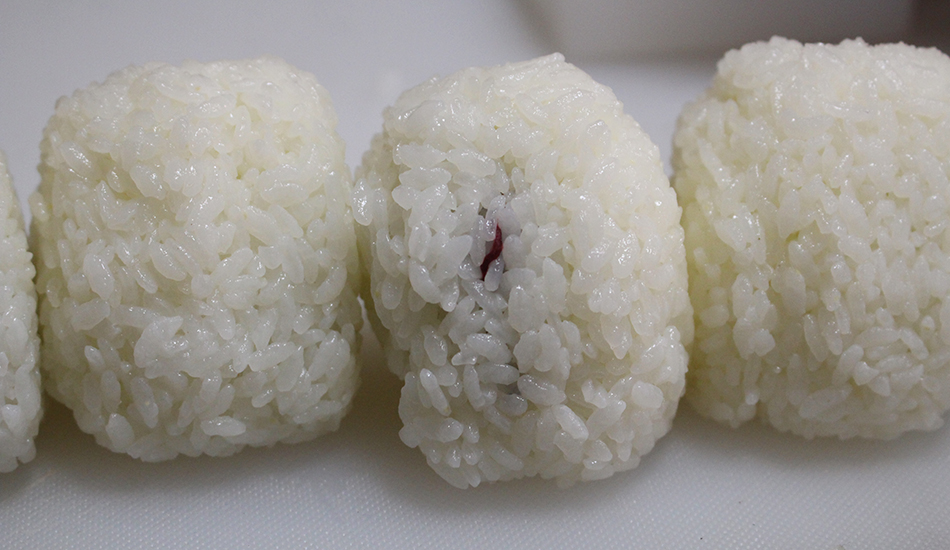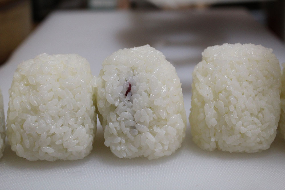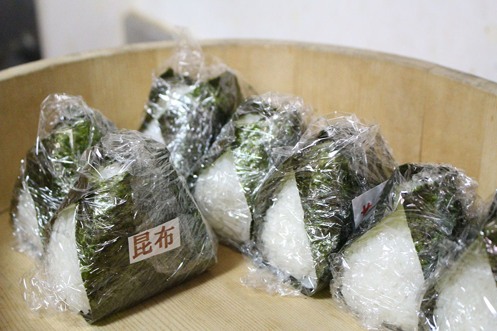 お味は、自家製梅干し、シャケ、たらこ、昆布、おかか、ツナマヨ。