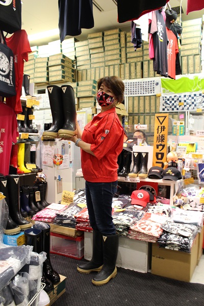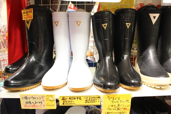 市場で働くプロフェッショナルの足元を支えてきた日本製長靴の有名店で、テレビ番組や雑誌などでも頻繁に紹介されています。