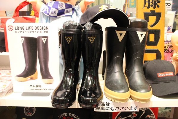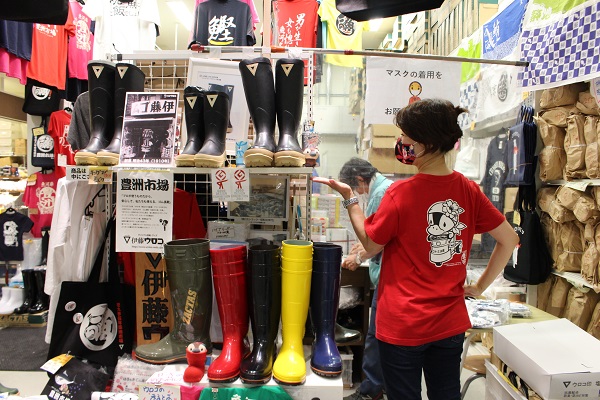 オリジナル長靴を中心にTシャツなど市場グッズも豊富。