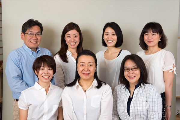 △理枝さんのご主人で1級建築士の敏雄さん以外は全て女性。プランニングから引き渡しまで、インテリアコーディネーターや2級建築士の資格を持つ女性スタッフが一貫して担当します