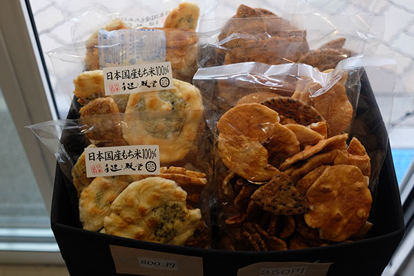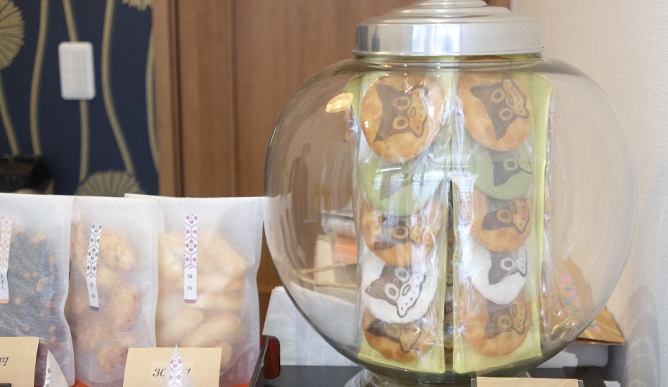 レトロモダンな雰囲気が、おせんべいをよりおいしく見せています。