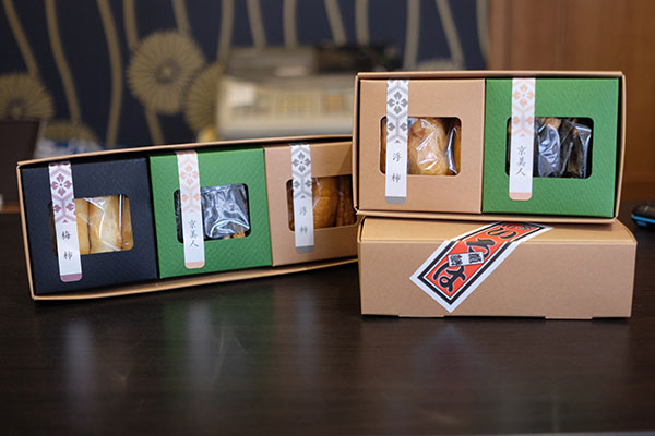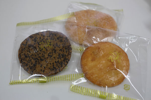 おせんべいは、おやつにもギフトにも使える優れもの。プチギフト用のパッケージもリニューアルしました。