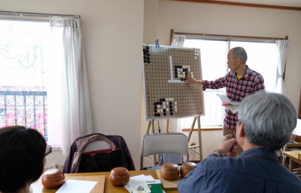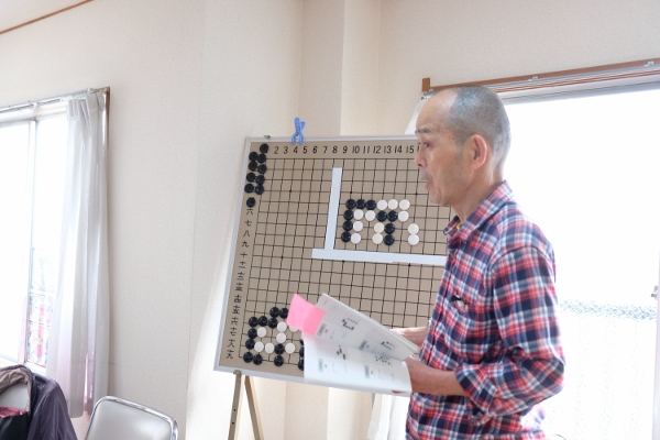 植木さんが碁盤にトレーニング本の問題通り碁石を置きます。