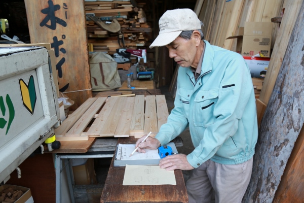 縦、横、幅を測って書いた簡単な設計図を書いてお渡しします。