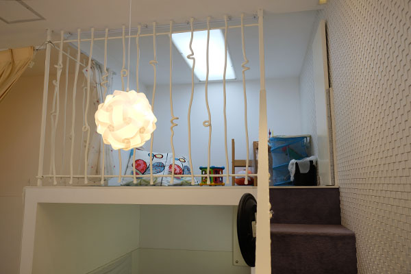 2012年の開業当時、幼いお子さんの育児真っ只中だったという原野さんがママの視点で中2階に設けた、遊びの空間です。