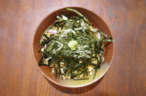 さらにたっぷりの海苔をトッピング。これでもか!というくらいに盛られた具材で、真上から見ても、麺が見えない!!