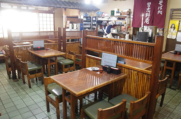 店内は竹を使った間仕切りで昔ながらの雰囲気。テーブル席のほかに、奥には座敷もあるので宴会などにも利用されるそうです。