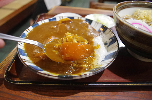 おそば屋さんのカレーライスは美味しいとは言いますが、こちらのカレーライスには甘口のそばつゆが使われており、コクのある味わい。