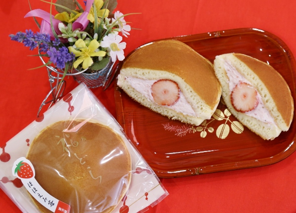 「とちおとめ」がまるごと一個入った季節限定のどら焼き。