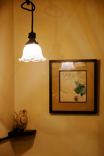 客席に流れる音楽は、会話の邪魔にならない音量に抑えられたジャズ。どことなくレトロな雰囲気、落ちついた色調の店内です。