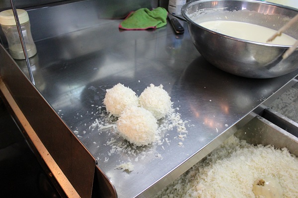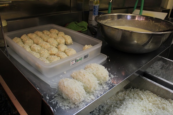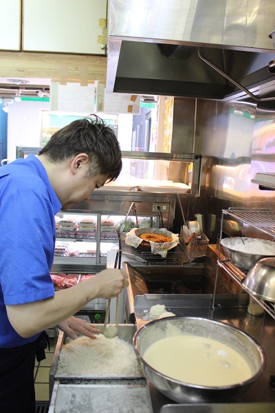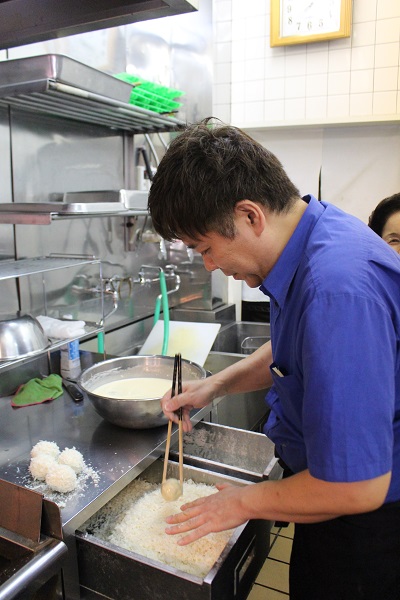 こちら、店主・関川和彦さんがプレミアムコロッケを仕込んでいるところ。