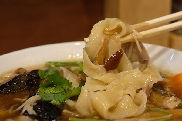 「あんかけ麺」ではとろみのあるスープが絡みやすい、刀削麺をチョイスしました。