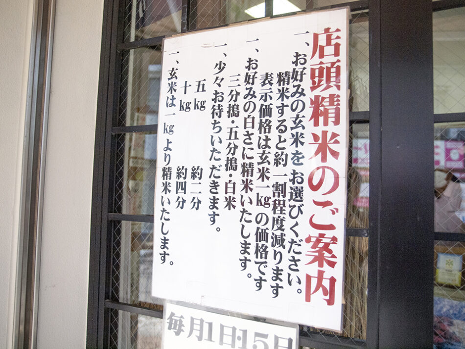 また店頭に精米機が設置されており、精米したてのお米を購入できるのも魅力のひとつ。