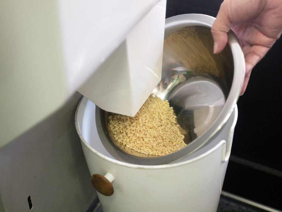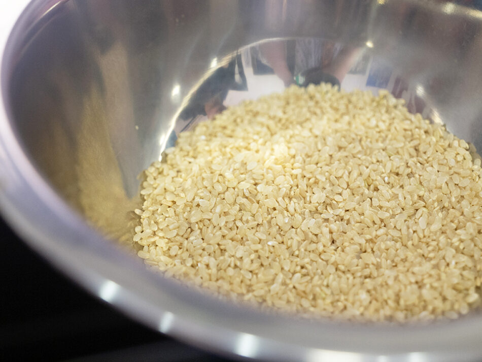玄米は浸水時間が長く、栄養価が高いことはわかっていても玄米食に切り替えるのはちょっとハードルが高いイメージがあります。「全く精米をしない状態の玄米は水を吸収しにくいので、一晩浸水させるなど確かにかなりの時間を要します。そこでおすすめしているのが三分搗き精米です。お米の表面に傷がつくことで水が入りやすくなって、白米とほぼ同じ時間で浸水できるんです。三分搗きであれば、胚芽や糠もできるだけ損なわず、玄米の栄養価も摂ることができますよ」。