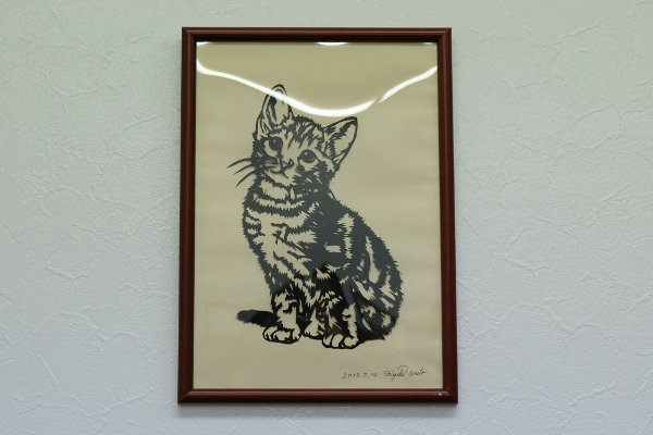 安藤さんの手先の器用さがわかるような、趣味で作っているという切り絵作品がそこここに飾られています。
