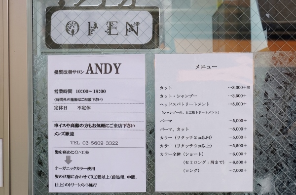 店主は、美容師歴約40年のキャリアを持ち、自らも美髪をキープする安藤美幸さん。ちなみに店名は、安藤さんのニックネーム「アンディ」から。