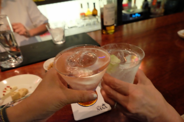 「女性が入りやすい店にしたい」という、その言葉通り、この日もカウンターには女性の常連さん。最初の1杯は、やはりジントニック。