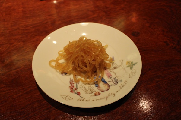 こちらは乾燥こんにゃくを醤油、おだしなどで味をつけ柚子の香りを利かせた、男性にも人気の一品。乾燥こんにゃくの弾力ある独特の食感にハマる人続出だそう。