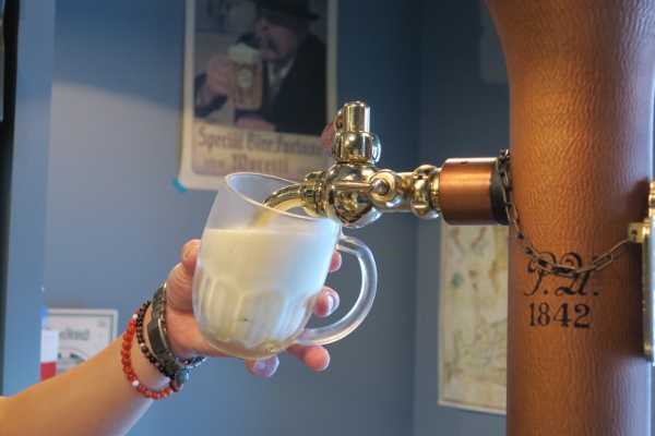 「ハラディンカ」は伝統的なチェコの注ぎ方。グラスに泡をいれたあとでビールを注ぎます。ナドバクラットより炭酸が弱め。ゆっくりと時間をかけて味わいたいときにおすすめです。