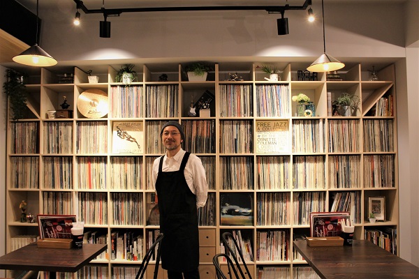 一見インド料理店らしからぬ店内は、壁一面に秋元さんのLPコレクションがズラリと並び、本格的な音響設備を備えたお洒落なライブハウスを思わせる空間。