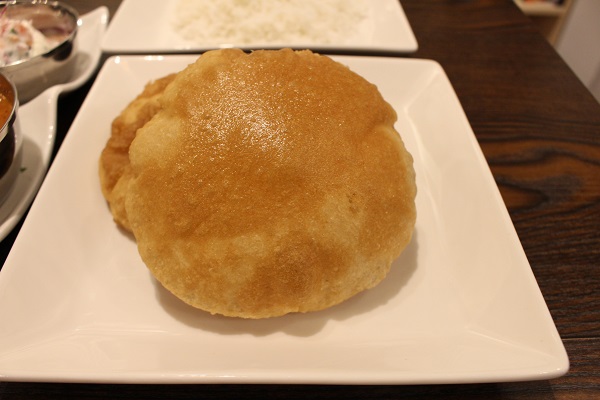 △チャパティと同じ、全粒粉の生地を揚げたものがプーリー。全粒粉の滋味と独特の食感がヤミツキの味