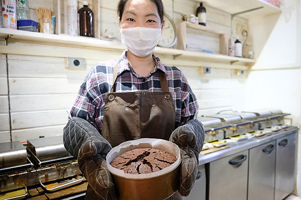 こちらは作りたてのガトーショコラ。残念ながらここでは販売せず、系列のカフェで提供しているそうです。「今後はこの工房オリジナルの焼き菓子も作りたいです」と丸山さん。