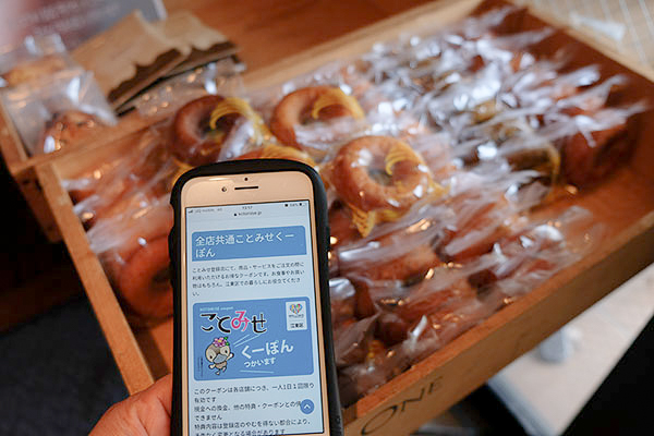 商品ご購入の際にことみせくーぽんを見せると、ドーナツを1個プレゼントしてくれますよ♪