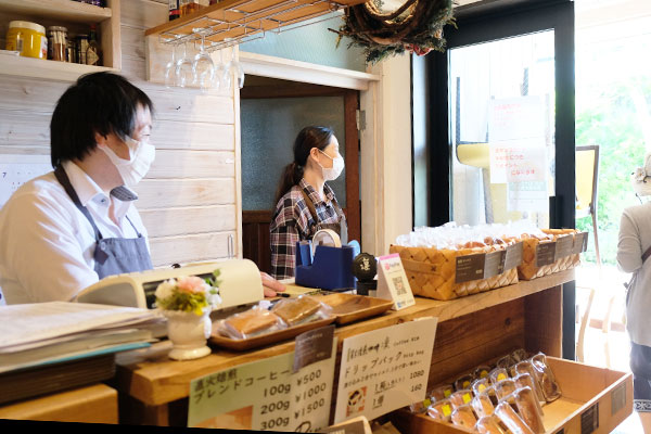 豆、挽き、ドリップパックで販売。「都心のカフェで飲んでおいしかったので自宅でも飲んでいます。ここのコーヒーが一番好き」というコーヒー通のお客様が訪れていました。