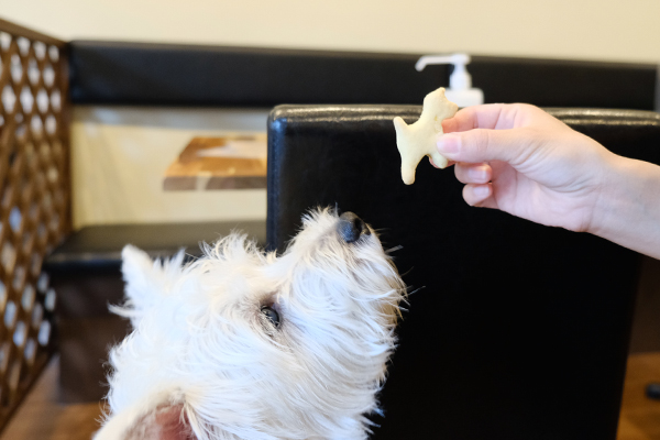 わんちゃん用のおやつ「ドッグクッキー」250円(税込)は、ゆきさんが離乳食用に茹でた野菜を加えて焼きあげています。